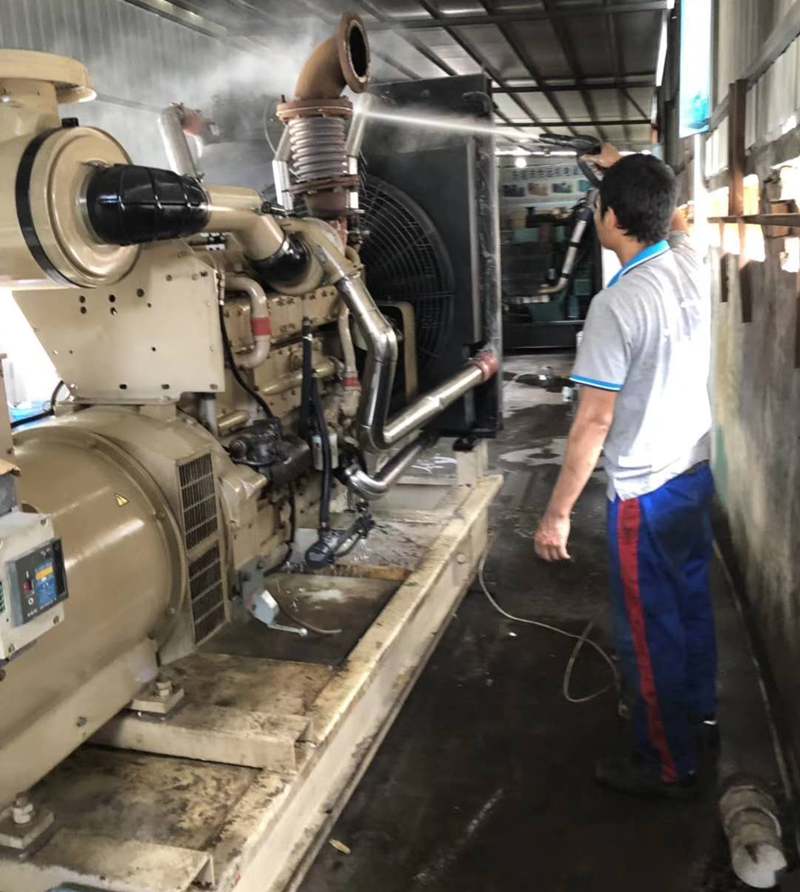 4、发电机外部清洗:刚回收回来的发电机外表都是布满了灰尘、油污等,看上去旧旧的。怡远发电机公司在对二手柴油发电机组进行检测保养后都会用专业清洗发电机组的洗机水,对机组进行外部的清洗,清洗后的机组一下子就有焕然一新的感觉。